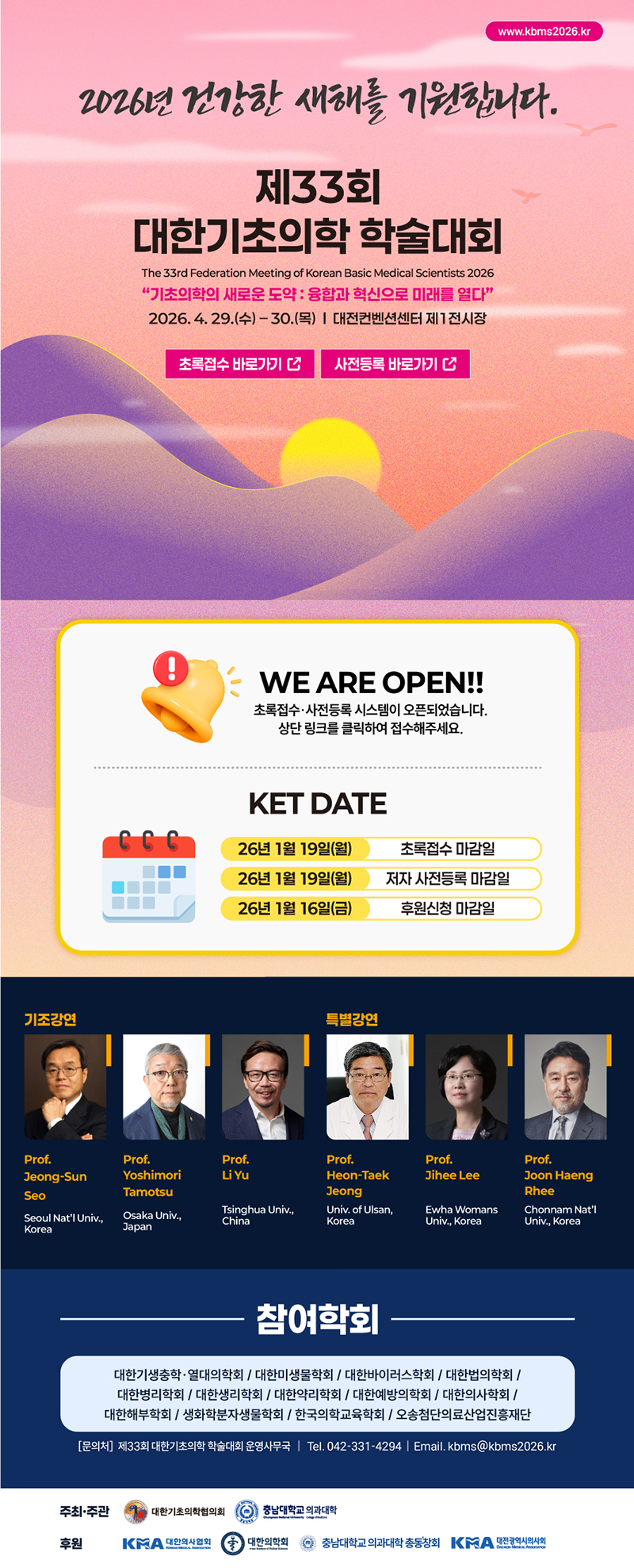 제33회 대한기초의학 학술대회 초록접수 및 사전등록 시스템 오픈 (1월 19일 초록접수 및 저자 사전등록 마감)